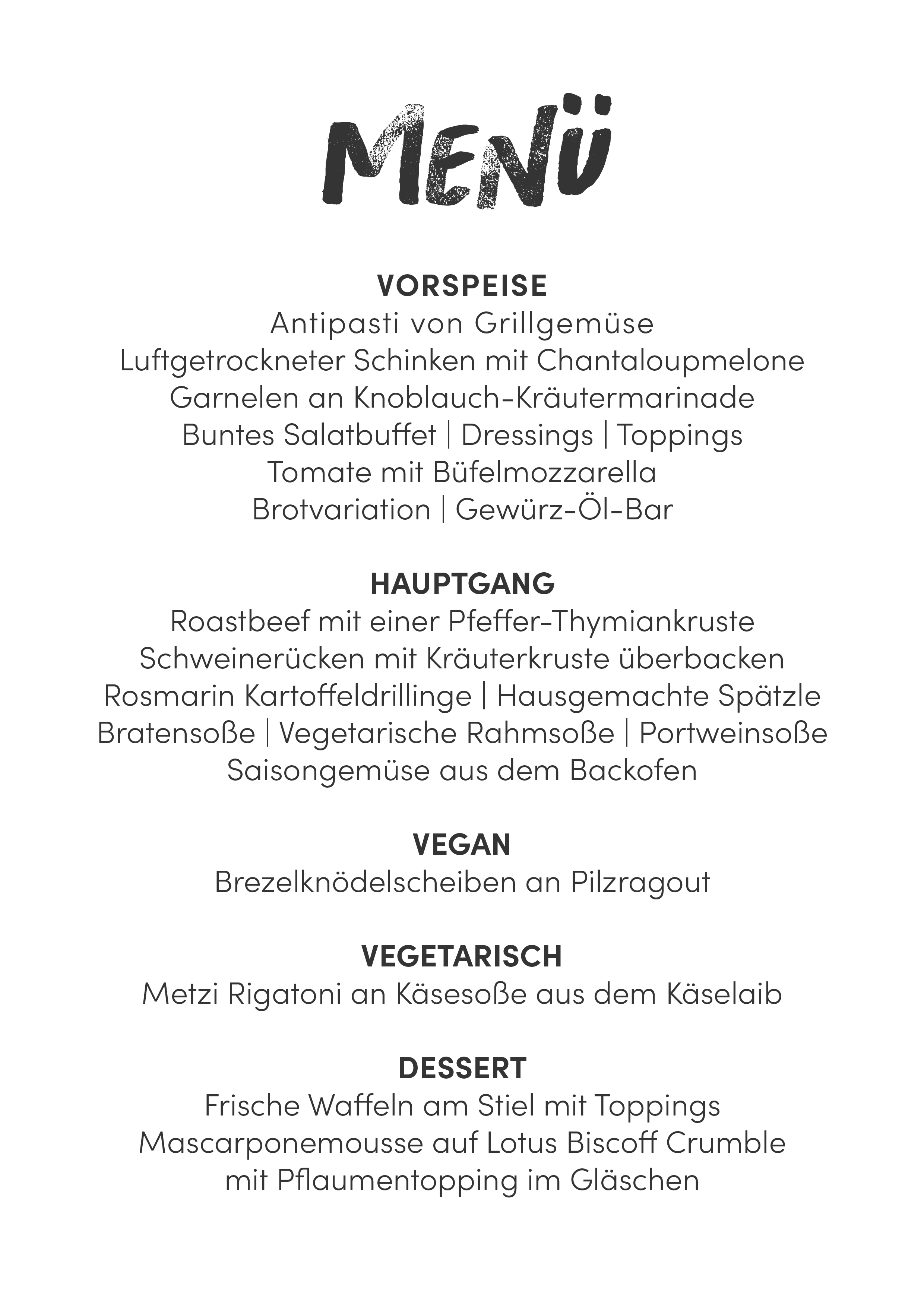 * Die Kosten werden bei Buchung unserer Dienstleistung wieder gutgeschrieben. Bezahlung erfolgt am Veranstaltungsabend nach dem Essen und wird vom Q12 inkl. den Getränken abgewickelt.